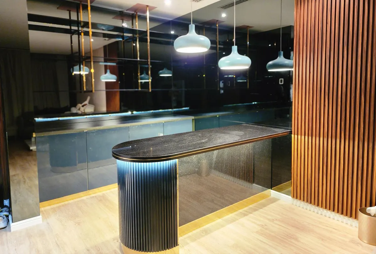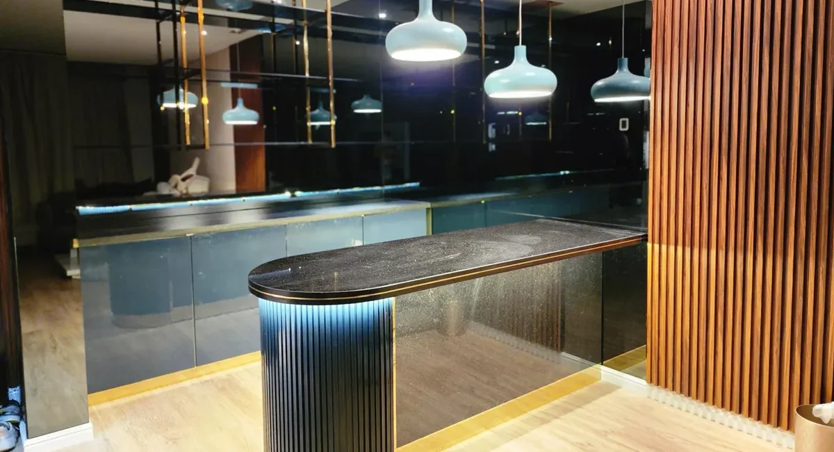 Lighting & Ambiance: Strategic lighting solutions were implemented to enhance the bar’s atmosphere, highlight design features, and create a welcoming environment.