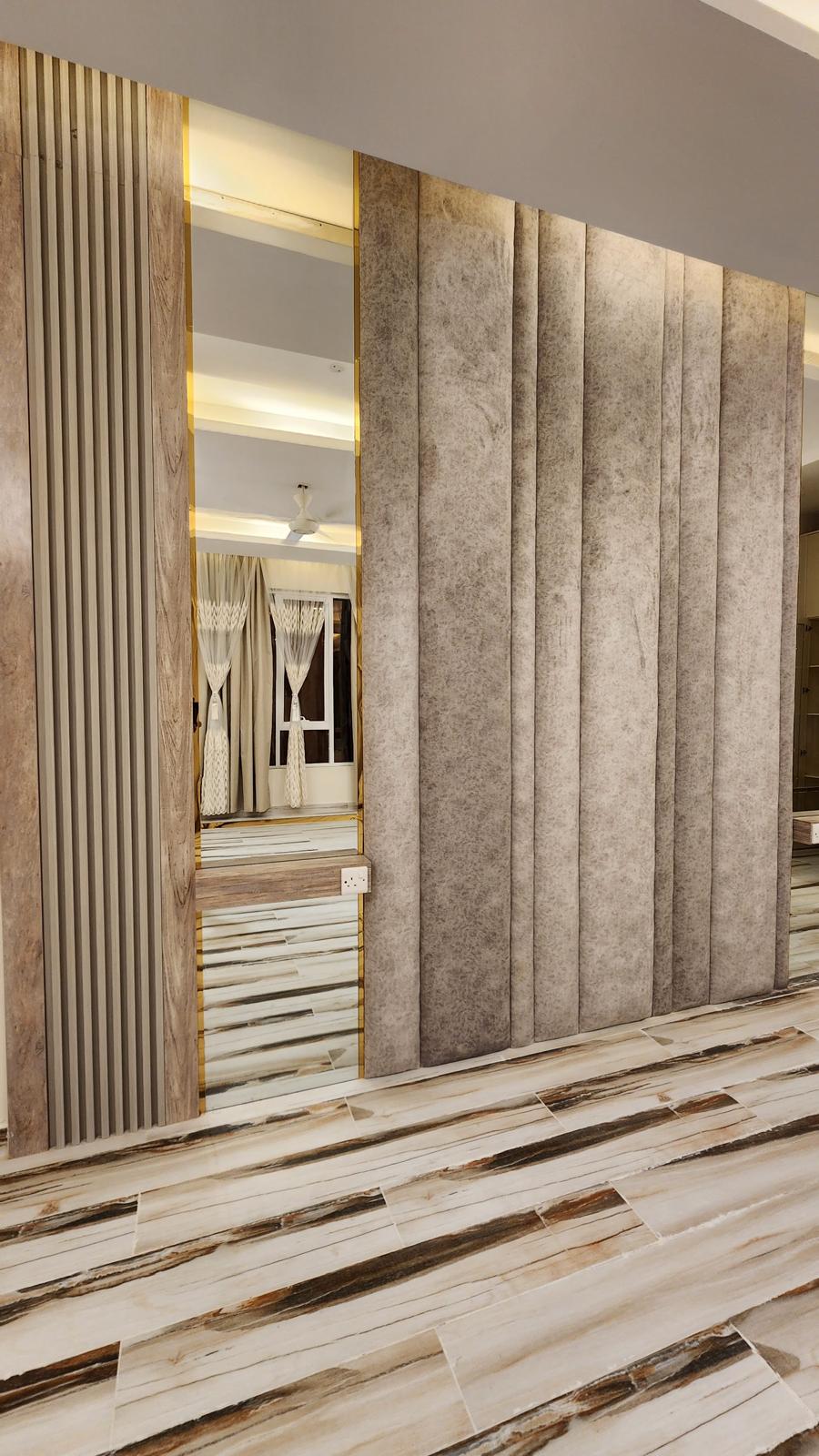 The finished headboard delivers a striking balance of comfort, elegance, and modern design, elevating the master bedroom with a touch of sophistication and luxury. This project exemplifies Third Eye Visionβs commitment to customized interior solutions that combine creativity, quality, and precision.