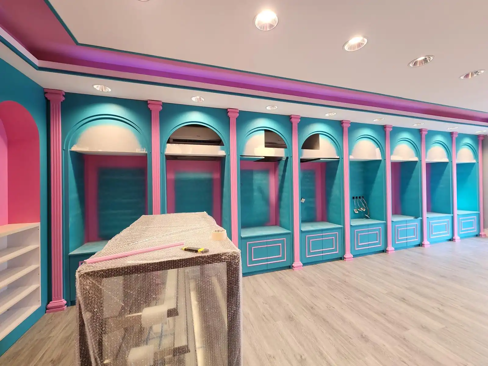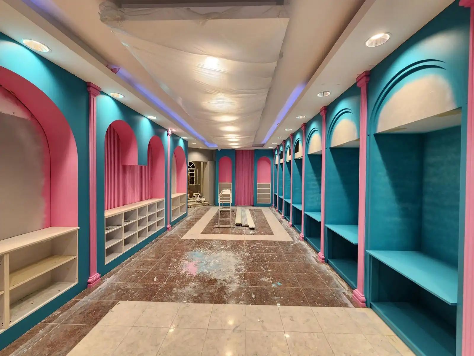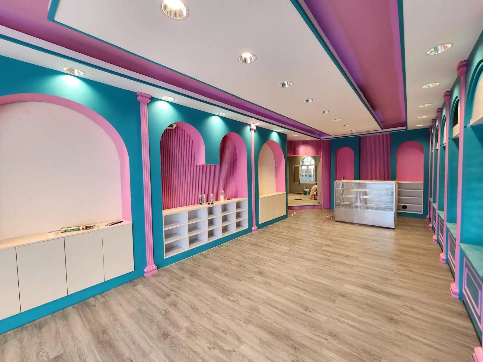 This project encompassed a complete interior transformation, including custom interior design, professional painting, flooring solutions, and advanced lighting design. Each element was carefully planned and executed to create a cohesive and immersive environment that aligns with the playful and delightful theme of the store.